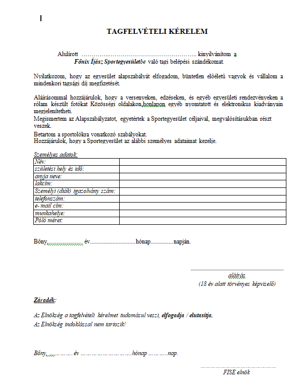 A tagfelvételhez szükséges nyomtatvány a vezetőségtől szerezhető be. ;)